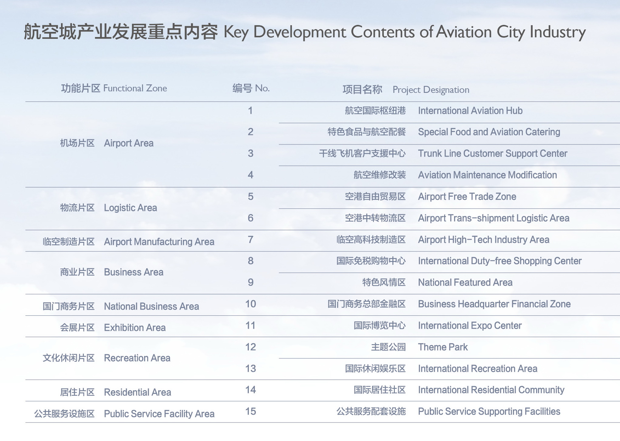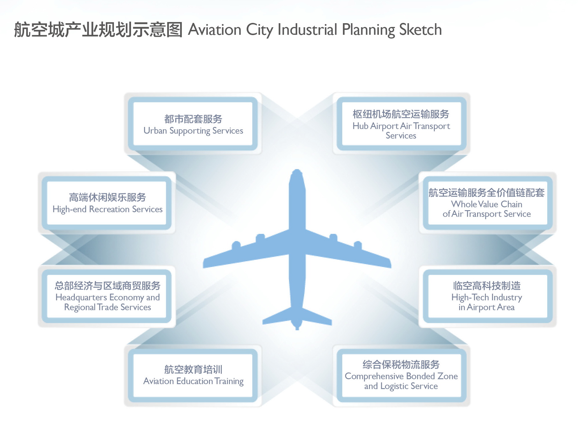 According to the latest development trend of aviation city, AVIC-KDN Airport Engineering Co., Ltd. conducts comprehensive and systematic planning and development of aviation city through extensive attention and research on the planning and construction of domestic and foreign aviation cities and the development trend of airport economy, which mainly includes: aviation city function composition and spatial planning, aviation city airport industrial chain planning and development, planning and development of terminal complex, planning and development of conference and exhibition facilities, planning and development of logistics industry park, industrial park planning and development over the weekend, aviation industrial park planning and development, the environmental construction planning and the development for the aviation city, aviation city informatization construction planning, the planning and the development of the city terminal facilities, city planning and development for aviation city, international airport area structural planning and development, etc.