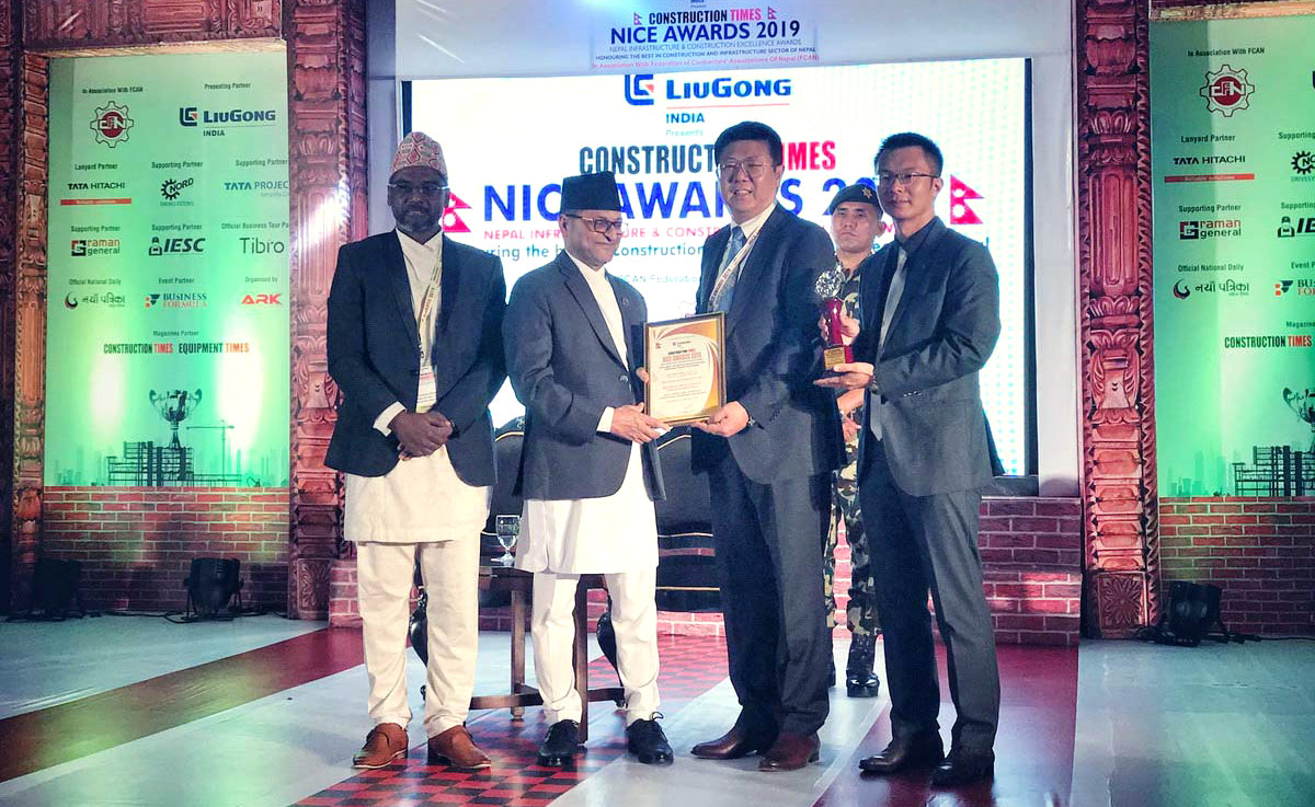 Recently, the result of Excellence Award with the intention of honoring the best in construction and infrastructure sector of Nepal was announced and the Rehabilitation of Runway & Taxiway of Tribhuvan International Airport in Kathmandu undertaken by our company was awarded with the “Best Upcoming Airport Project of the Year”. The Minister of Infrastructure and Transport of Nepal conferred this award to our company.