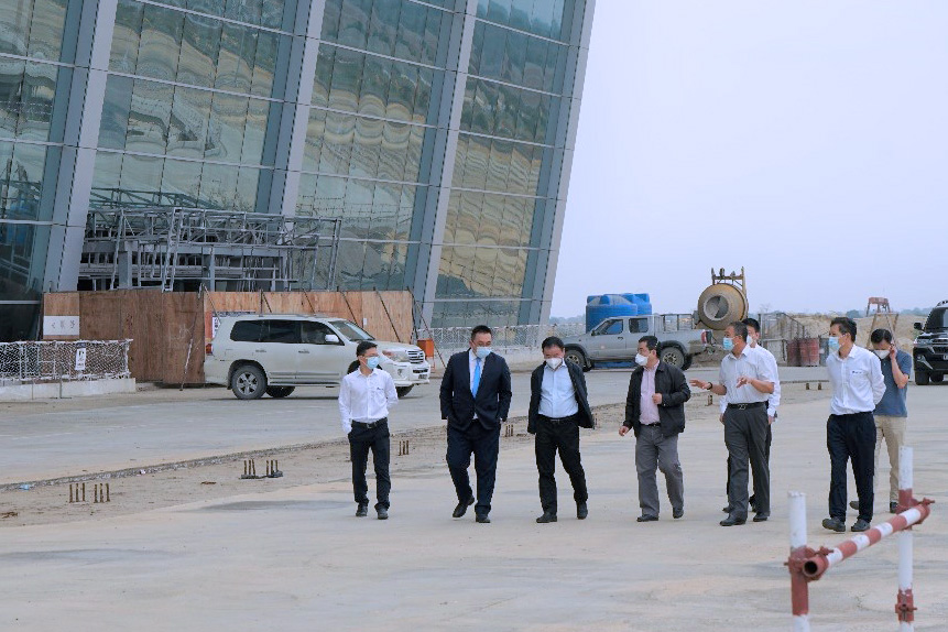 Ambassador Gong and his delegation visited the airport's passenger terminal, flight area, central station and business jet terminal. At the same time, we visited the infirmary, emergency shelter, staff dormitory, canteen and office of the camp, and expressed our concern and sympathy to the living, working and epidemic prevention situation of the project staff through cordial talks from time to time.