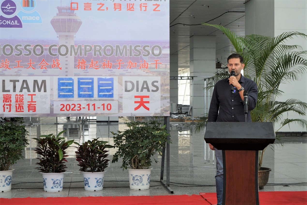 监理方MACE总经理Bruno Silva表示:今天是个标志性时刻,这个倒计时面板除了提醒我们工期,也是将我们的精力和力量汇聚到一起的纽带。完成这个共同的竣工目标,需要我们所有在场人员的共同努力。当然,今天成绩的取得也与那些已经离开人员的贡献密不可分,我们不能忘记。在此,我代表MACE表示,将全力以赴,配合现场所有人员完成工作,达到竣工的共同目标,交付内图博士国际机场投入使用。