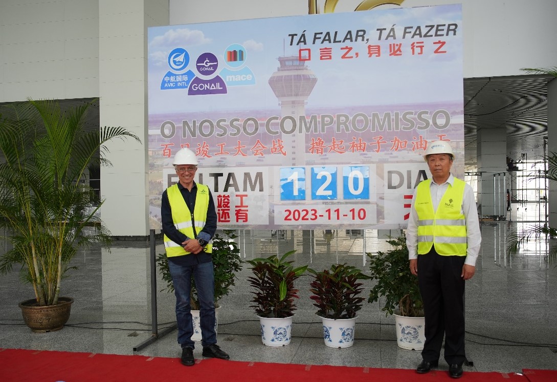 2023年7月10日,中航凯迪恩机场工程有限公司安哥拉罗安达新国际机场项目指挥部举办了内图博士国际机场百日竣工动员大会。安哥拉业主方GONAIL协调员José Paulo Nóbrega,监理方MACE总经理Bruno Silva,总包商项目指挥部指挥长、中航凯迪恩机场工程有限公司总经理程军,业主代表及参建各单位中、安员工约1000人参加了此次活动。