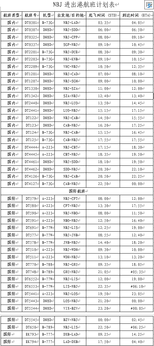 At present, the daily flight operations at the António de Agostinho Neto International Airport (NBJ) are running smoothly. TAAG Airlines' domestic flights include multiple routes such as NBJ-Roanda, NBJ-Luanda, and NBJ-Cabinda; international flights cover direct flights to Johannesburg, Lisbon, Nairobi, São Paulo, and Dubai. The operational support has fully kept up with the pace of international transfer.