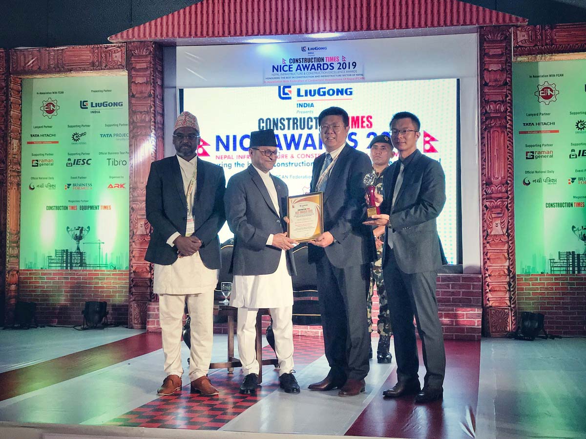 Recently, the result of Excellence Award with the intention of honoring the best in construction and infrastructure sector of Nepal was announced and the Rehabilitation of Runway & Taxiway of Tribhuvan International Airport in Kathmandu undertaken by our company was awarded with the “Best Upcoming Airport Project of the Year”. The Minister of Infrastructure and Transport of Nepal conferred this award to our company.
