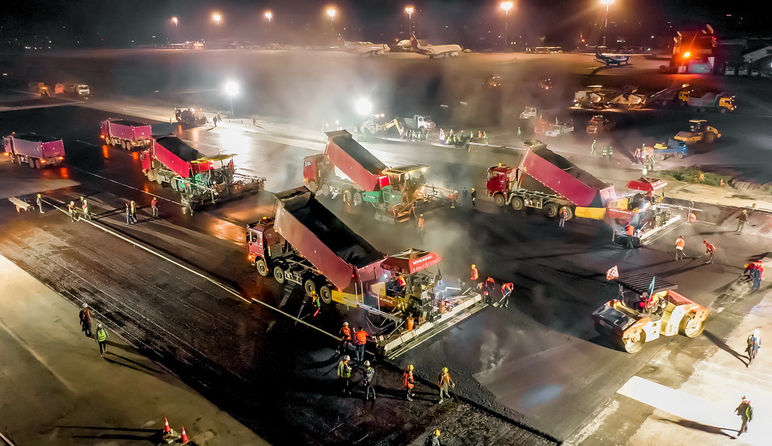 The airport had to be closed for 10 hours daily to allow construction crews to work on the runway. The 3,050-metre-long runway has now been refurbished and covered with a new layer of asphalt.